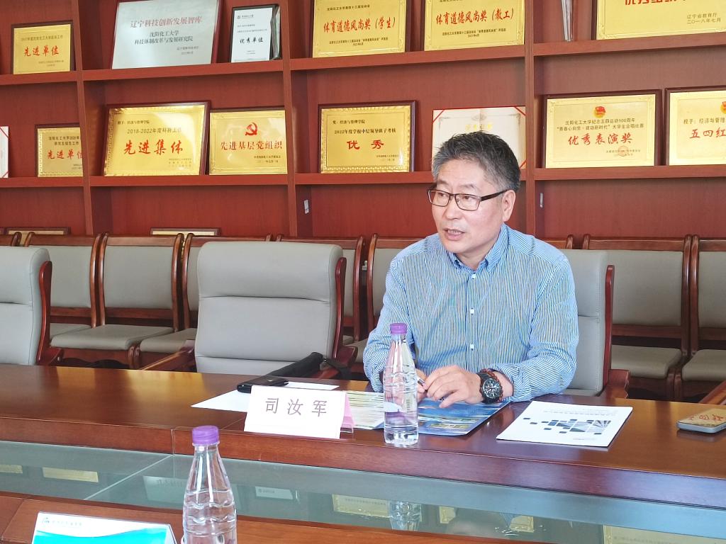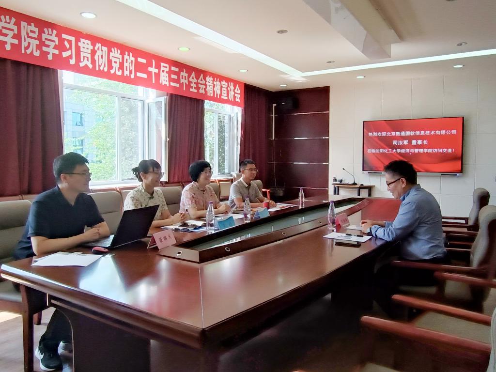 2024年9月6日上午,中国国际贸易学会理事、北京数通国软信息技术有限公司司汝军董事长访问经管学院,在329会议室举行座谈。经管学院院长王蓉、国际贸易教研室主任李岩、聂鸿天老师以及辅导员刘伟老师参加座谈。