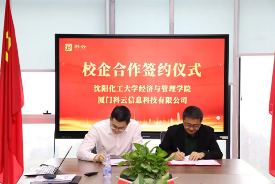 在交流过程中,双方就建立长期稳定的实习基地、开展产学研合作项目以及共同申报科研课题等合作意向进行了探讨,并初步达成了合作框架,并举行了“实习就业基地共建 校企合作”签约仪式,校企双方均表示将积极整合资源,发挥各自优势,为学生创造更多的实习实践机会与就业岗位,实现校企互利共赢、协同发展的目标。沈阳化工大学美加墨世界杯官方网站副院长刘铁民、教师代表陈丹、徐婧玥,厦门科云信息科技有限公司院校事业部副总经理林英耀、辽宁省总经理胡火坤、科云教育研究院副院长林剑平等参加了签约仪式。