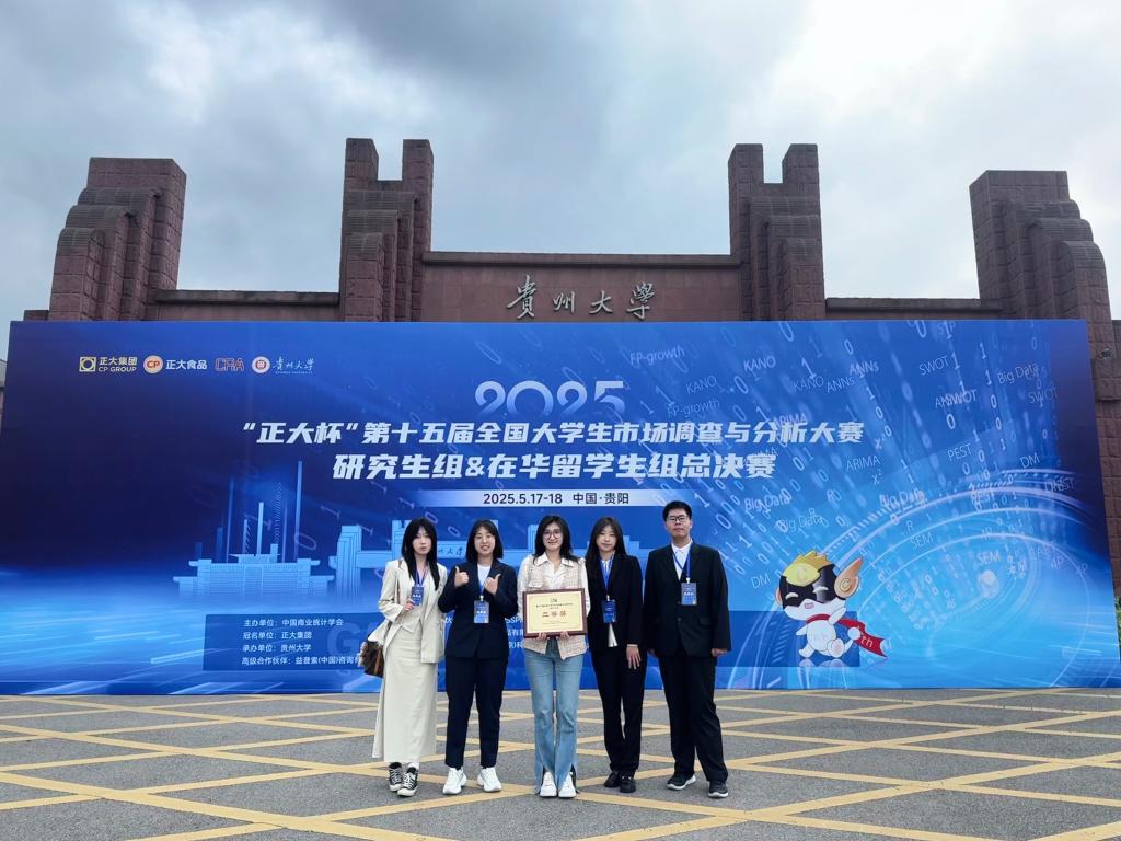 近日,第十五届全国大学生市场调查与分析大赛研究生组及在华留学生组总决赛于贵州圆满收官。作为国内市场营销与统计学领域的顶级赛事,本次大赛吸引了全国1184所高校、超34万名学子踊跃参与,其中研究生与留学生赛道汇聚589所高校同台竞技。在这场高规格赛事中,我校美加墨世界杯官方网站参赛团队凭借深厚的专业功底与卓越的协作能力,一举揽获国家级二等奖1项、省级一等奖1项、二等奖2项、三等奖4项,展现出强劲的学科实力。