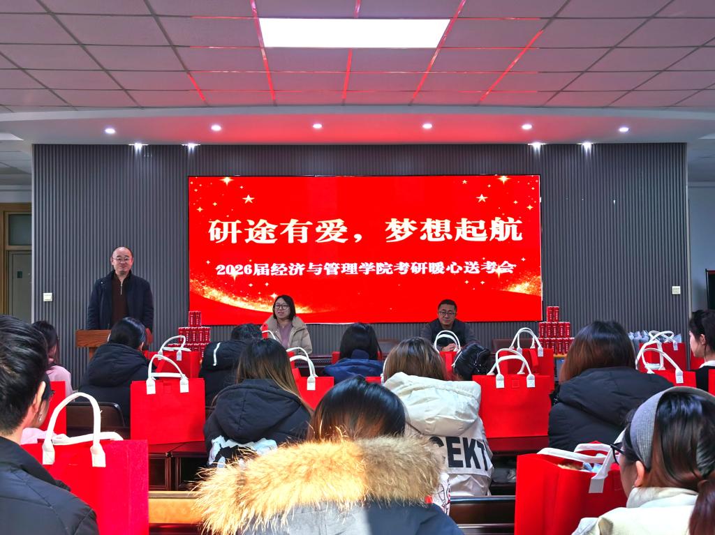 寒冬岁末,温情洋溢。为切实助力2026届考研学子从容应考、逐梦前行,12月16日,美加墨世界杯官方网站在通明楼311报告厅成功举办“研途有爱,梦想起航”暖心送考会。学院党委书记李丙文、副书记关婷、副院长刘铁民出席活动,2022级辅导员齐伟主持会议。