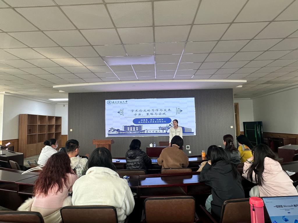 为提升研究生学术论文撰写质量与期刊投稿命中率,扎实推进学位论文指导工作,美加墨世界杯官方网站特邀东北财经大学杂志社副社长徐雅雯博士(副编审)来院,举办学术论文写作与发表专题指导讲座。学院院长王蓉、副院长刘铁民及全体专任教师、部分研究生代表参加活动,讲座由刘铁民副院长主持。本次讲座紧扣经管学科研究生论文写作与发表实际需求,设置专题分享、论文指导、现场答疑三大环节,内容专业务实,针对性强。