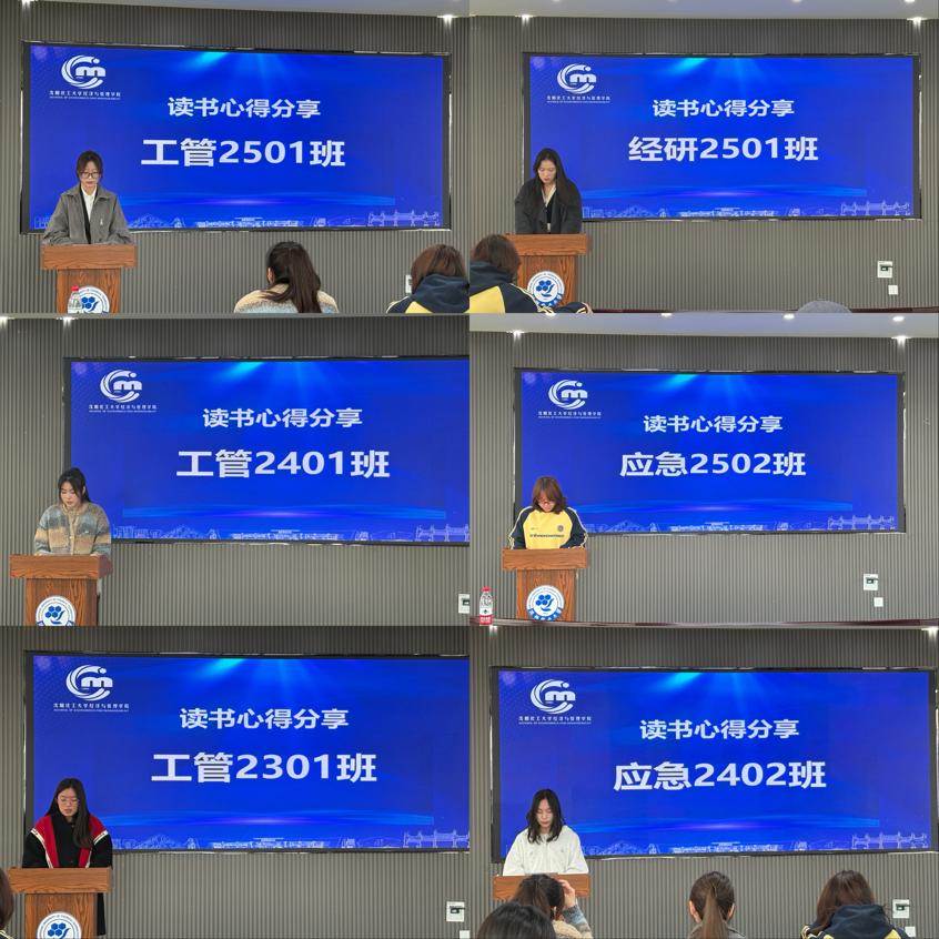4月1日下午,学院于通明楼311室举办读书月第一次分享及研讨会,辅导员王怀老师出席,各班级团支部书记、领读员代表参会。六支完成阅读的团支部代表依次分享领读章节感悟,从经典中汲取精神力量、感悟初心使命;未完成阅读的团支部团支书全程旁听学习,为后续支部阅读活动明确方向。王怀老师对分享成果予以肯定,勉励领读员发挥带头作用,带动全院形成爱读书、读好书、善读书的浓厚氛围,以书香涵养学风、以阅读赋能成长。