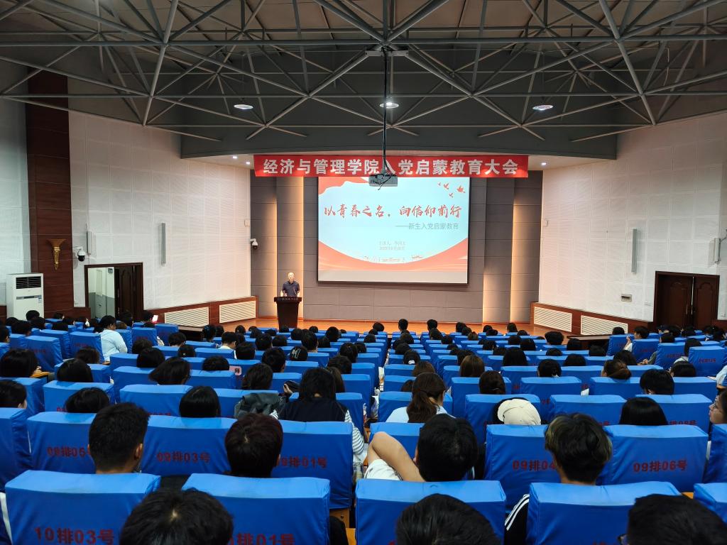 为引导新生坚定理想信念,增进对党的认识和感情,激发政治热情与报国志向,2025年9月28日晚,世界杯官网党委书记李丙文在碧帆楼304教室,为全体2025级本科生和研究生带来了一场主题为“以青春之名,向信仰前行”的入党启蒙教育党课。现场座无虚席,气氛庄重而热烈。