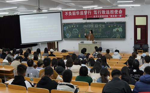 “云天收夏色,木叶动秋声”,沈水金秋来临之际,经济管理学院2023级研究生“院长第一课” 10月26日上午在应星楼203隆重举行,王蓉院长以“不负韶华追梦行,笃行致远担使命”为主题,为世界杯官网2023级研究生做了一场别开生面的学术科研教育讲座。2023级全体研究生怀着对科研、学习及未来的期待与憧憬,认真聆听院长的谆谆教诲。会议由2023级研究生辅导员张丽老师主持。