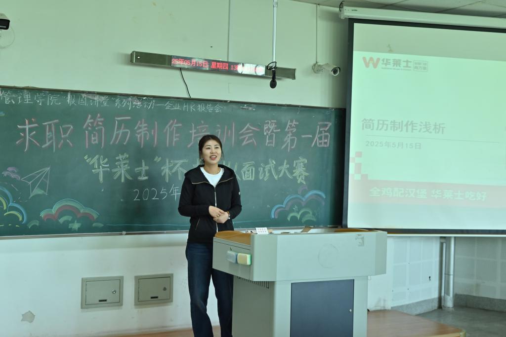 5月15日,美加墨世界杯官方网站在通明楼338室举办了“报国讲堂”大学生职业规划与就业指导主题讲座暨求职简历制作培训会。本次活动特邀上海华莱士贸易有限公司沈阳分公司人事主管姚琳女士担任主讲。2022级本科生、2023级研究生参加讲座,本次活动由学院分团委书记王怀主持。