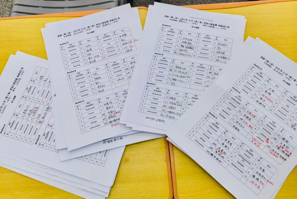 结合学生实际情况,辅导员张国平利用晚自习,带领学生开展四六级高频词汇专项训练和测试,每周开展模拟考试,专人监考专人判卷。通过“每日一测,每周一考”的学习形式,既有效提升了学生四六级词汇知识点把握,还帮助学生提前体会考试氛围,夯实了语言根基,又淬炼迎考心志,以“沉浸式”陪伴养成2024级学生自主学习习惯与科学备考思维。