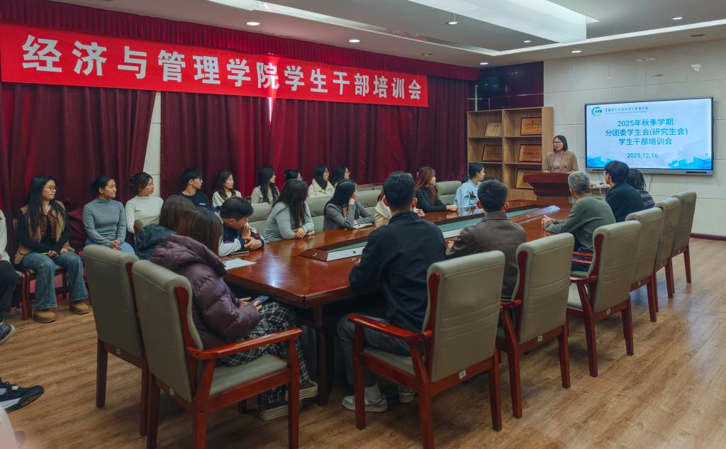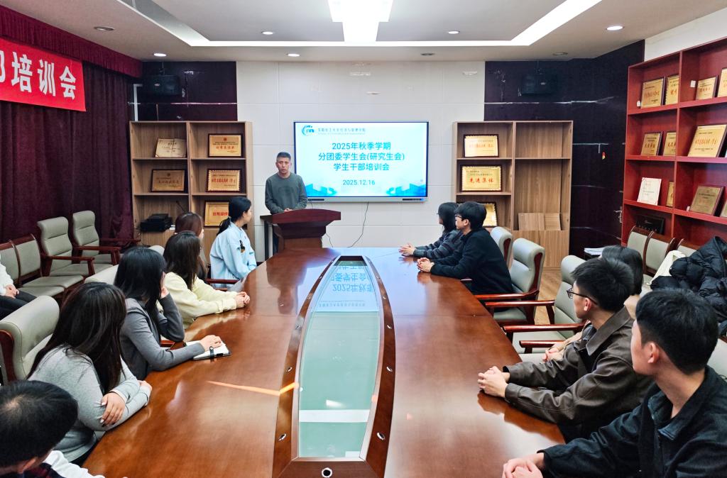 为强化学生干部责任意识、提升综合素养,夯实工作根基,12月16日,美加墨世界杯官方网站在通明楼329会议室召开了以“淬炼能力强担当,凝心聚力启新程”为主题的2025年秋季学期学生会(研究生会)学生干部培训会。分团委书记王怀主持会议,学院党委副书记关婷受邀开展专题培训,全体学生干部参会。